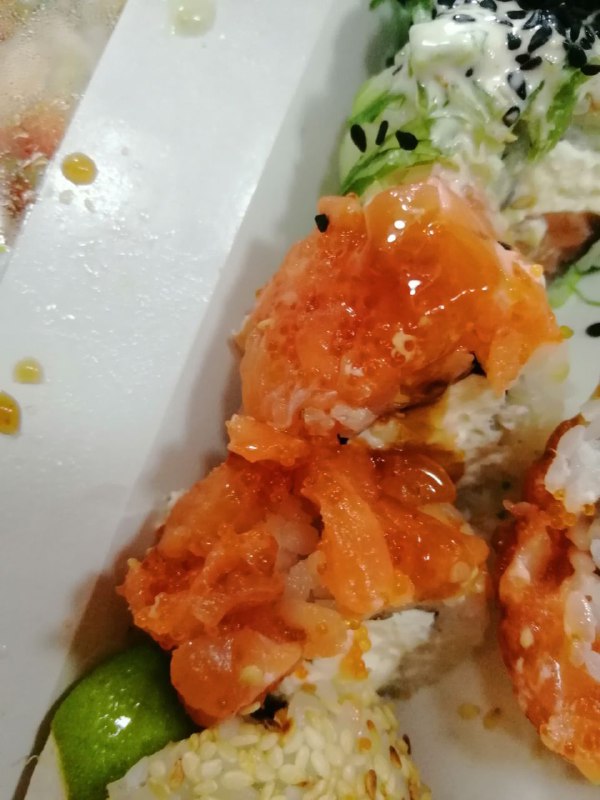 Состав: креветка, авокадо, манго, сливочный сыр, соус уорчестор, кунжутное масло, кунжут, сус кунжутный, петрушка