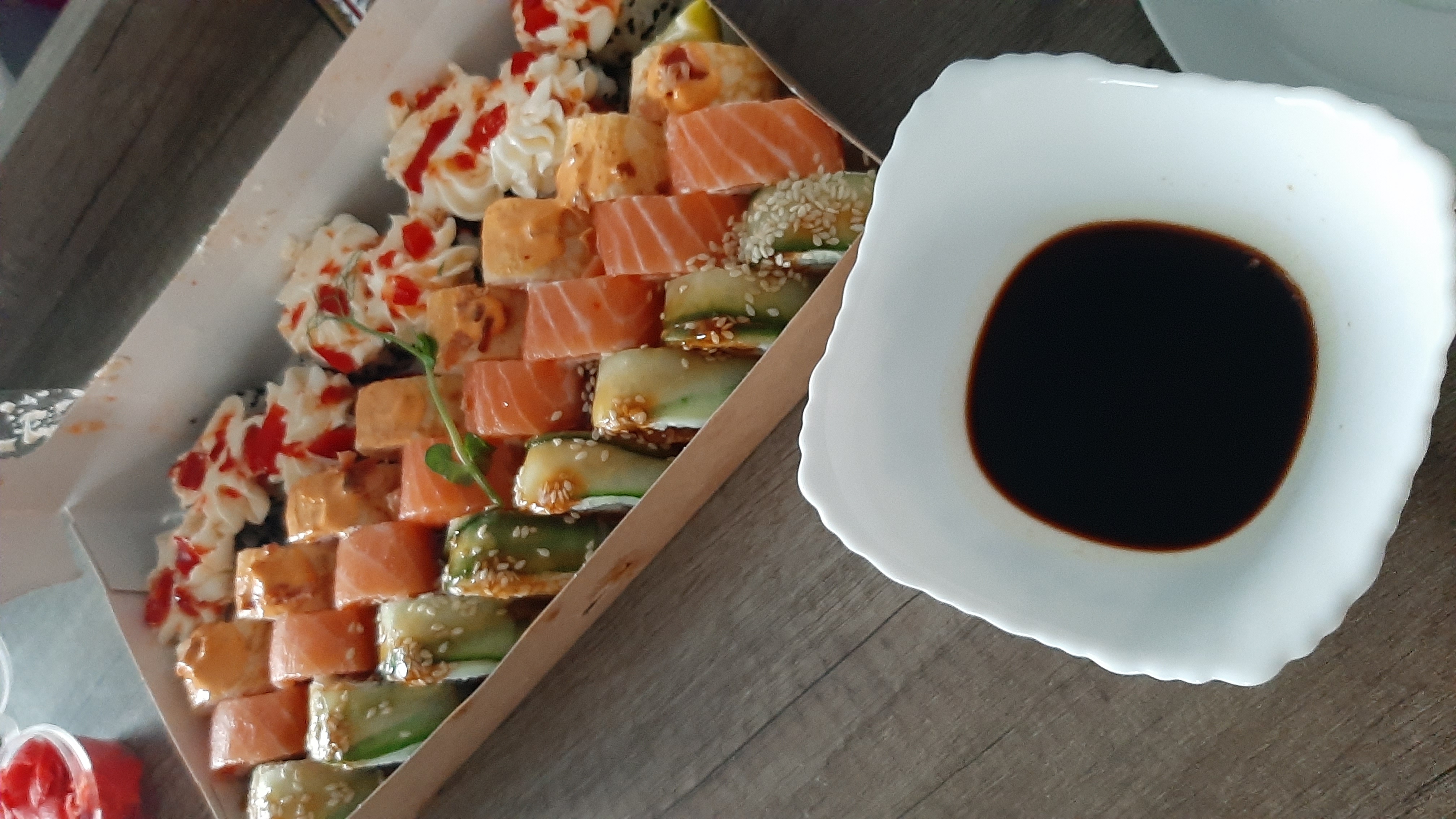 - Промокод дает право на скидку до 59% на сет "Анатолий доплатит" от "SUSHI HOUSE"