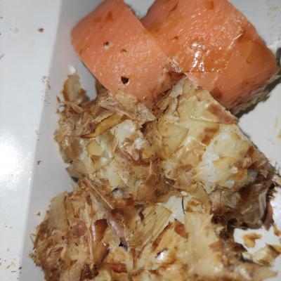 Состав: сунец, авокадо, сливочный сыр, кунжутное масло, картофель пай, соус терияки, кляр, сухари панко