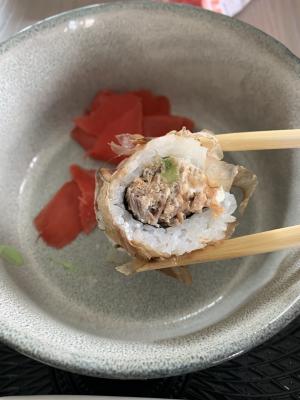 Состав: японский омлет, рис, нори, соус Унаги, кунжут белый