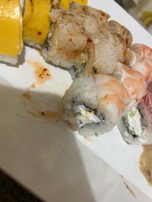 Состав: краб микс, сыр чеддер, огурец, чипс бекона, сливочный сыр, соус терияки, кляр, сухари панко