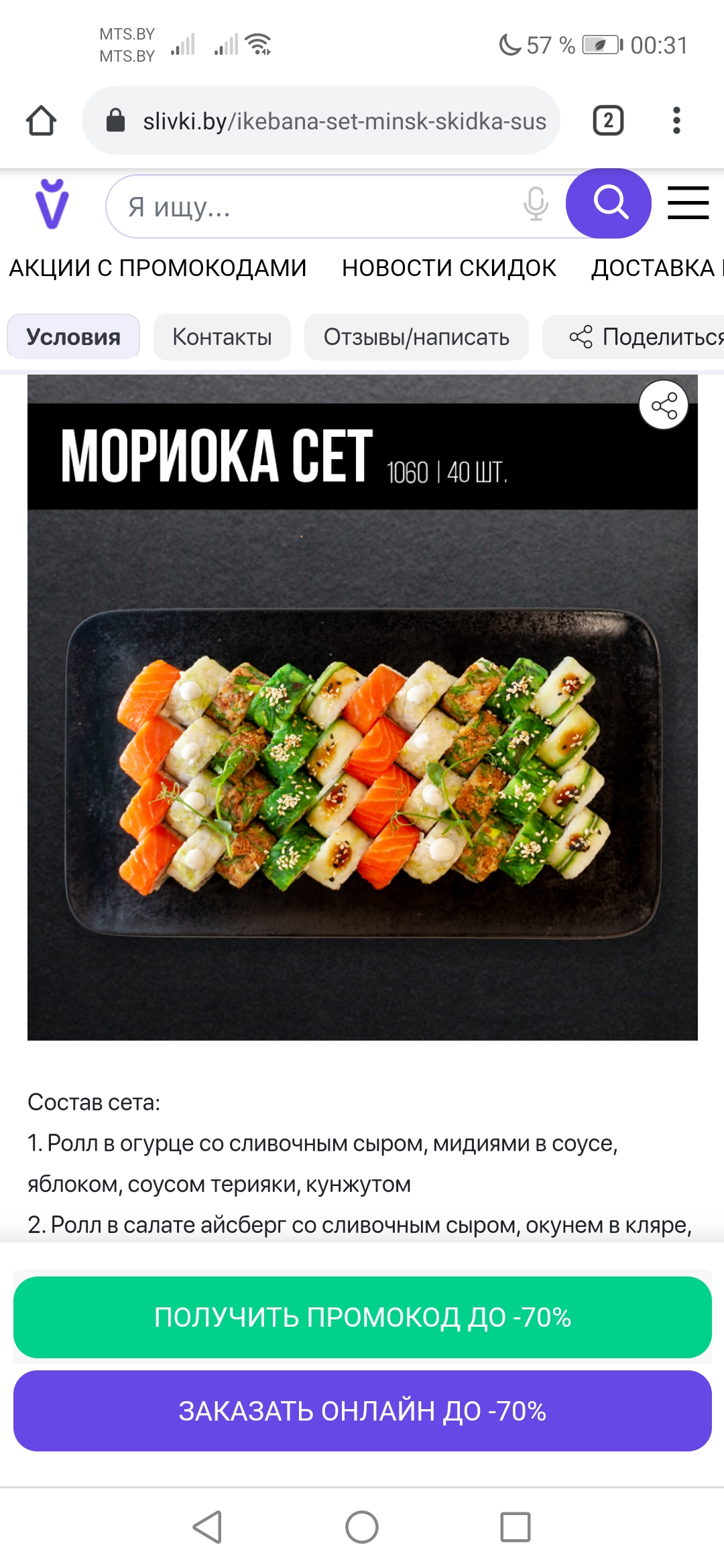 - Промокод дает право на скидку до 59% на сет "Анатолий доплатит" от "SUSHI HOUSE"