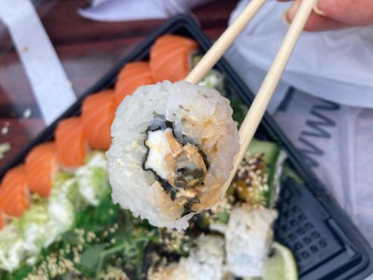 Состав: японский омлет, рис, нори, соус Унаги, кунжут белый