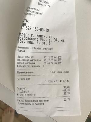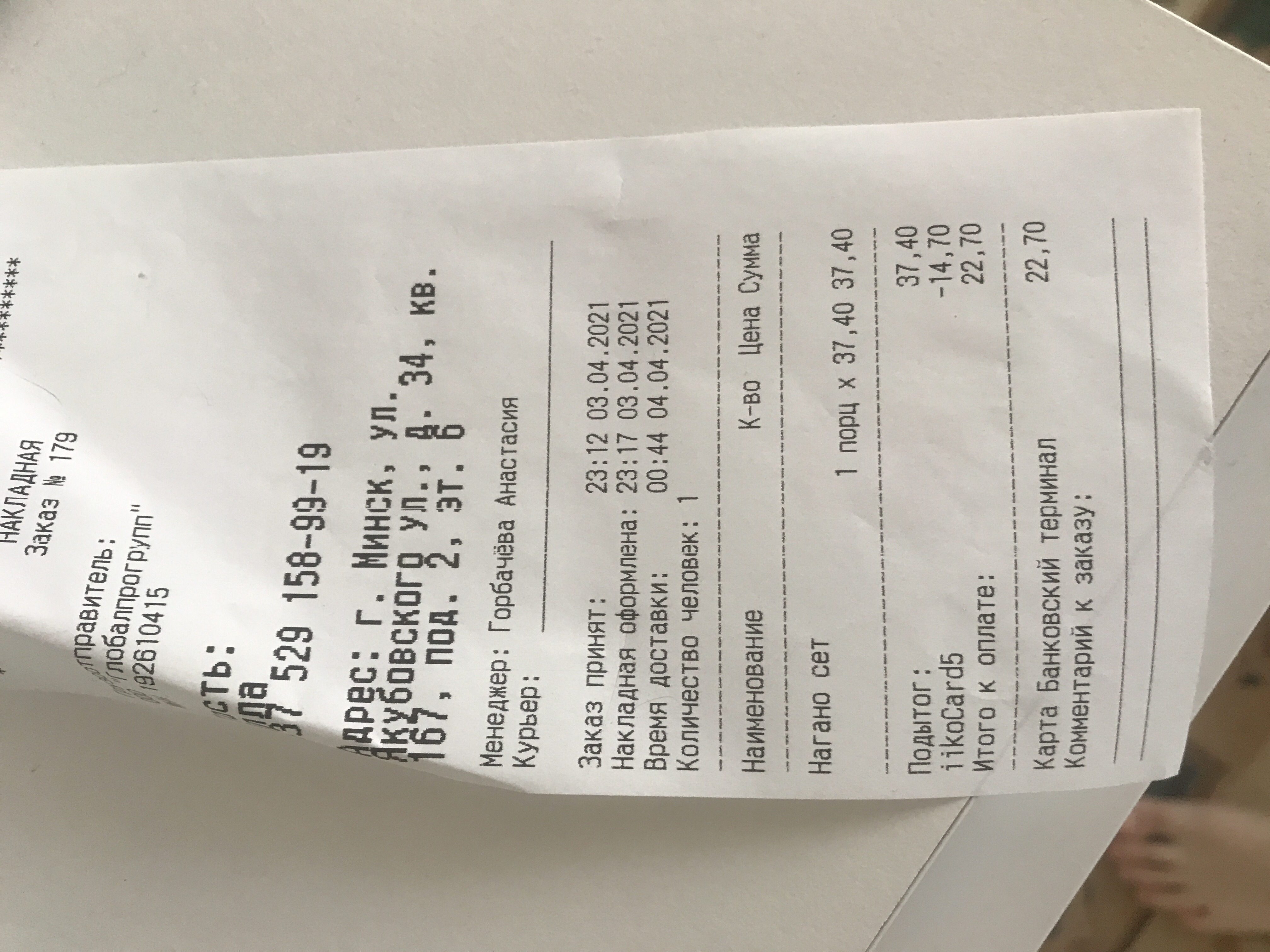 заказала сет «нагано». роллы в кунжуте с лососем пахли тухлым, на вкус отвратительно, в некоторых из них были исорченные ингредиенты. роллы в копченом лососе тоже оставляли желать лучшего. лосось как будто был раз 10 заморожен-разморожен. раньше заказывала не раз, все было отлично. спасибо за испорченный ужин!🤮🤮🤮 номер заказа 113