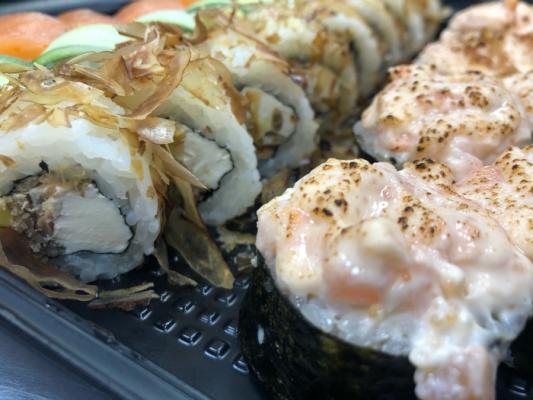 Состав: японский омлет, рис, нори, соус Унаги, кунжут белый