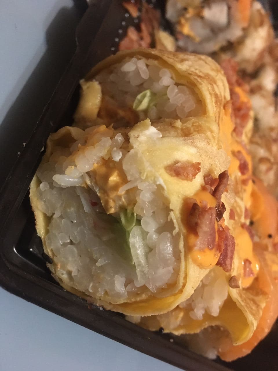Состав: японский омлет, рис, нори, соус Унаги, кунжут белый