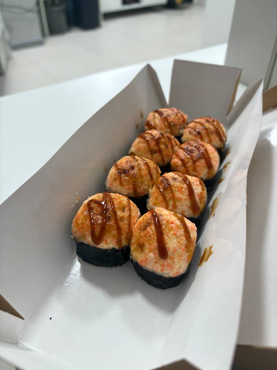 Состав: японский омлет, рис, нори, соус Унаги, кунжут белый