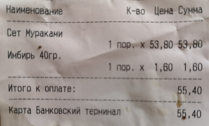 Среда (навынос, доставка): 3,10