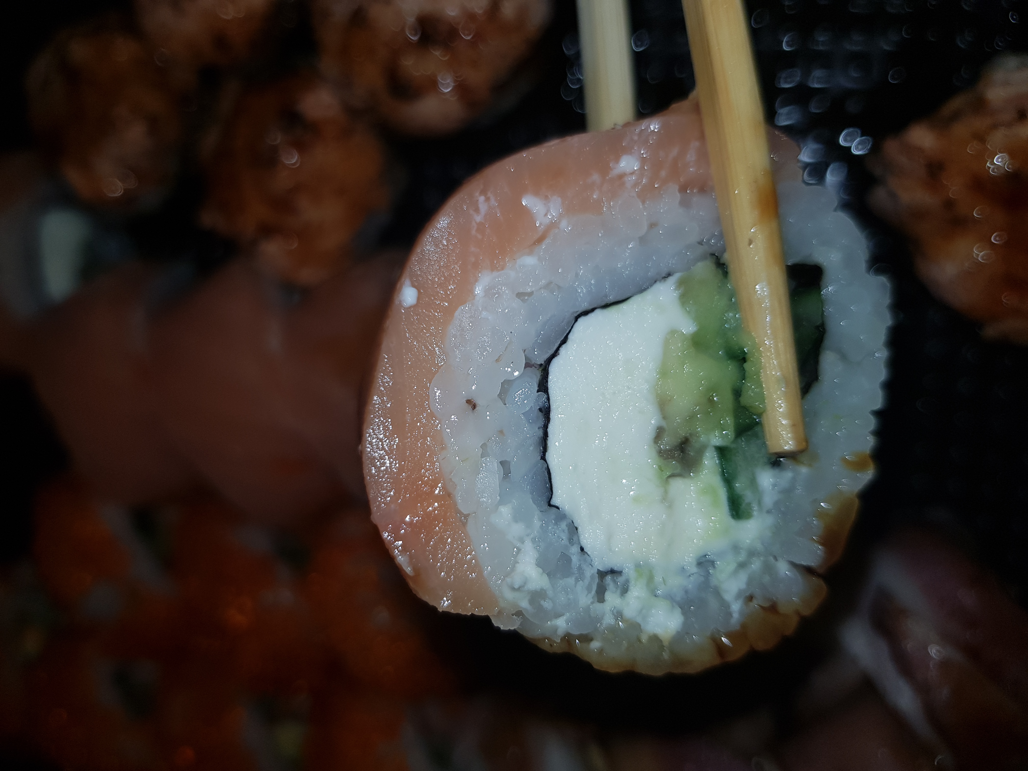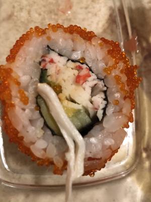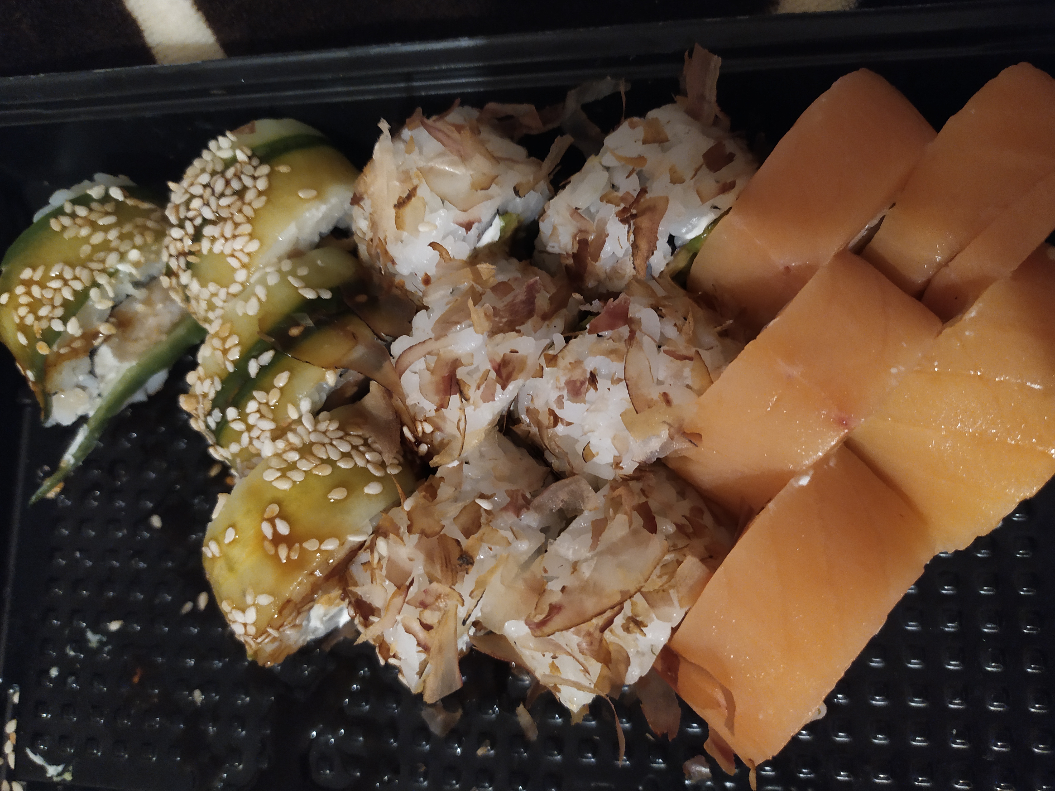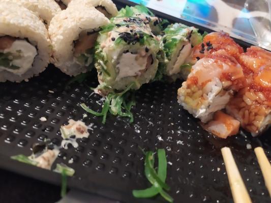 Состав: лосось, огурец, сливочный сыр, соус спайси, кунжут кимчи, соус терияки, кляр, сухари панко