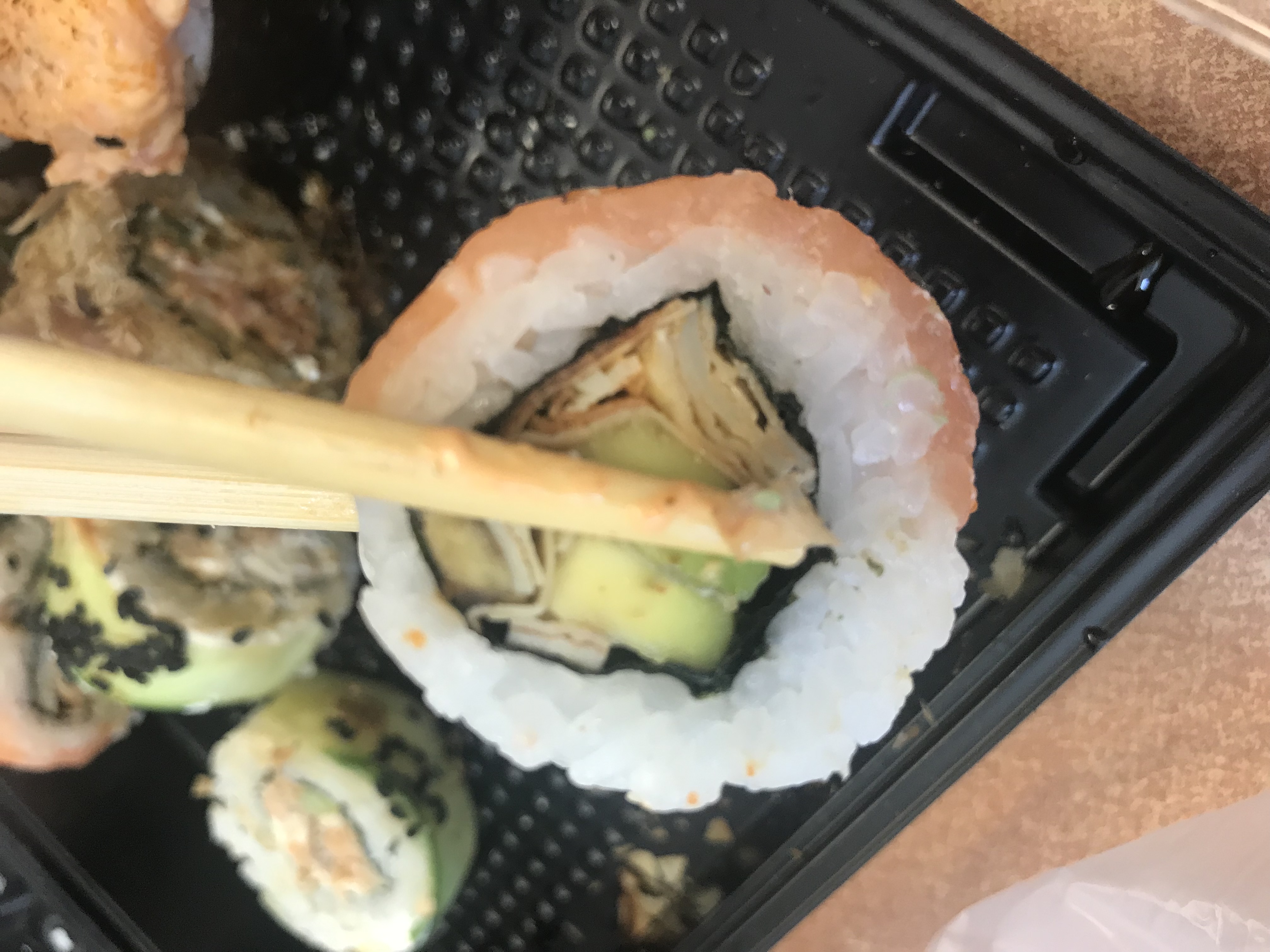 Состав: сунец, авокадо, сливочный сыр, кунжутное масло, картофель пай, соус терияки, кляр, сухари панко