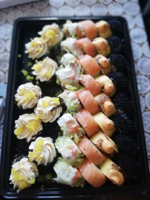Очень вкусные суши. Я покупал на условиях самовывоза сделано было все в срок. Спасибо за акцию.