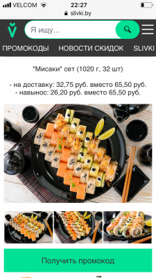 - Промокод дает право на скидку до 59% на сет "Анатолий доплатит" от "SUSHI HOUSE"