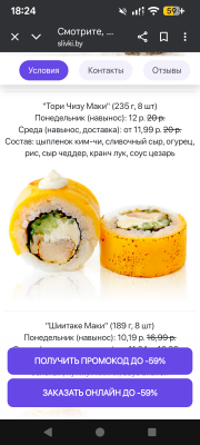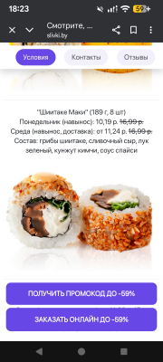 - Промокод дает право на скидку до 59% на сет "Анатолий доплатит" от "SUSHI HOUSE"