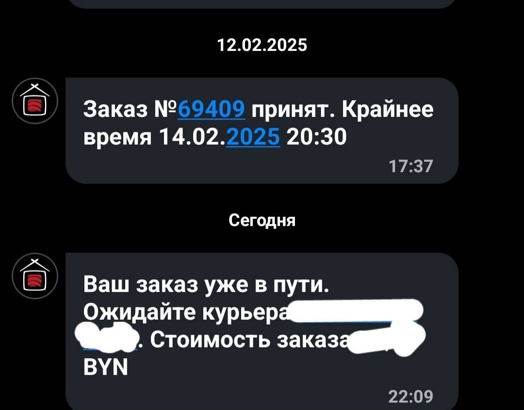 - Среднее время доставки составляет 45-90 мин (может меняться в зависимости от дорожной обстановки), готовность заказа на самовывоз 20 мин.