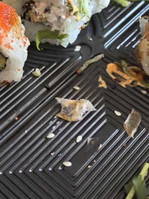 Состав: краб микс, сыр чеддер, огурец, чипс бекона, сливочный сыр, соус терияки, кляр, сухари панко
