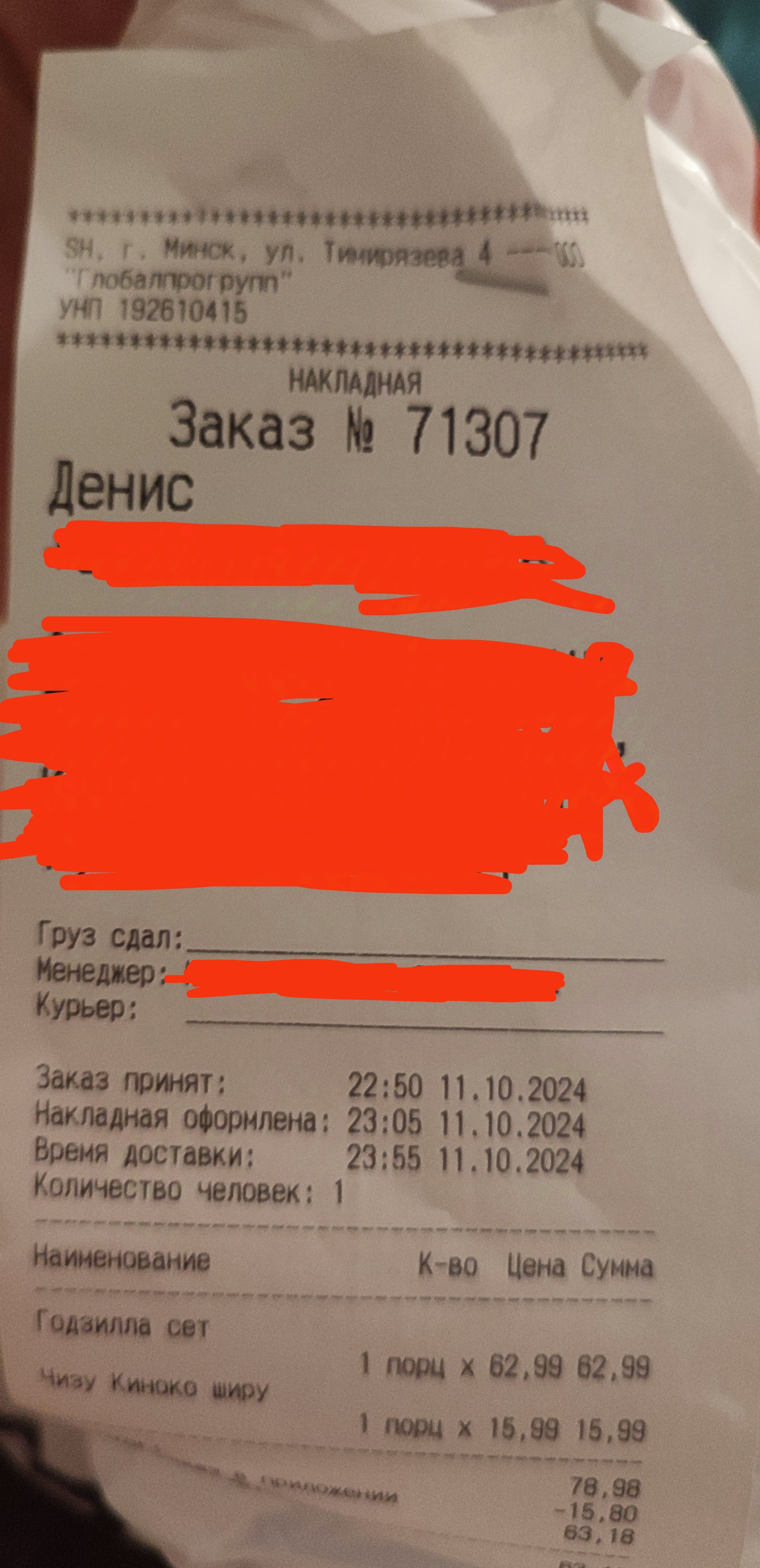 - время доставки: от 60 мин