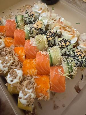 Берем суши не первый раз. Очень хорошее обслужвание , всегда вовремя приготовлено. Очень радуют скидки. И очень-очень вкусно.