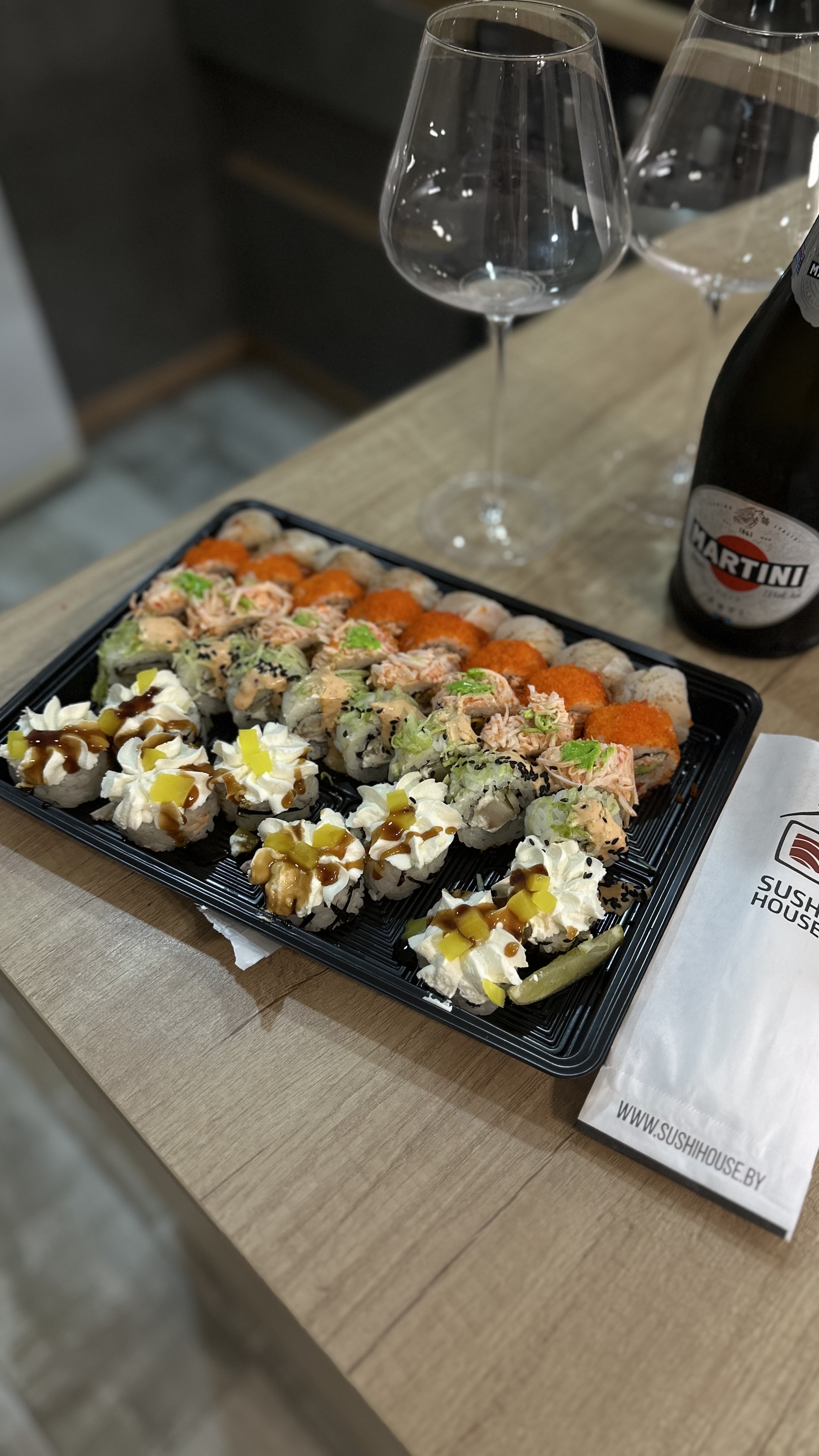 Заказывали Кинг сет , очень вкусно , суши хаус не перестают радовать ,впрочем как и всегда все на высшем уровне )