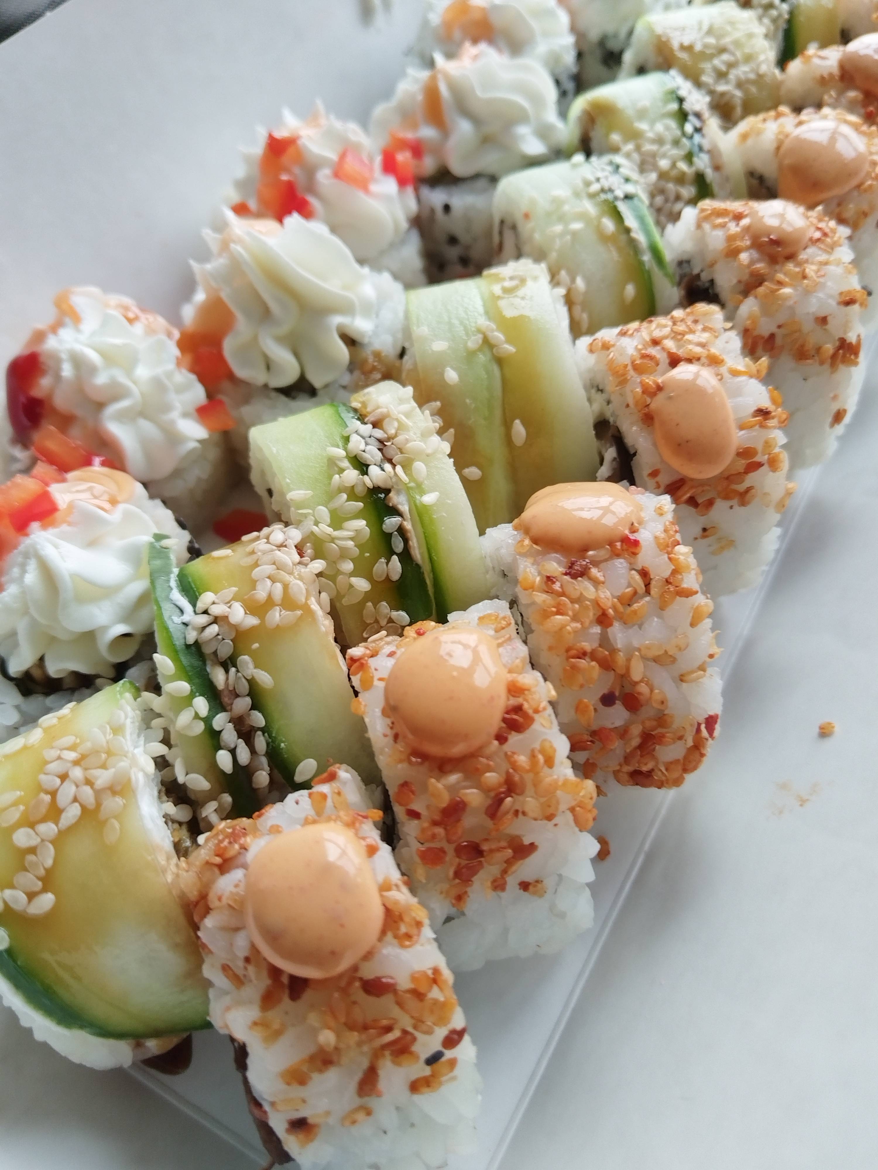 Брали два сета, Анатолий доплатит и Викторию гран. Остались сыты и безумно довольны 💘😊Ещё классный момент, что учли все мои комментарии, тк я не люблю авокадо и Тобику, эти ингредиенты убрали. И от этого роллы менее вкусными не стали. Рыбы было очень много 😻Все роллики аккуратные и большие. Огромное спасибо всей команде этого заведения ❤️