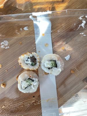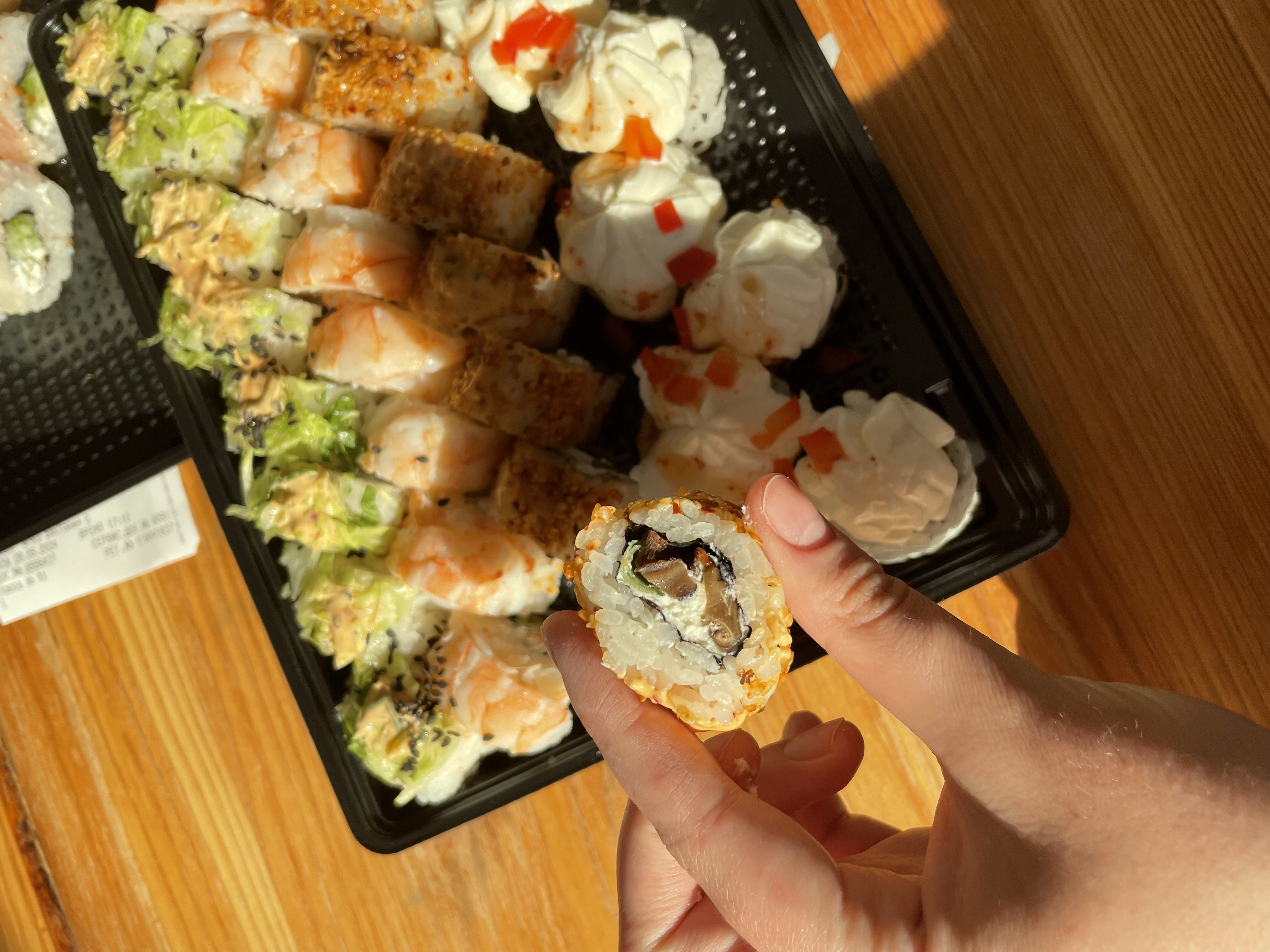 К сожалению, попробовать суши не удалось. Онлайн заявку сделала, код на сливках оплатила и ничего. Оператор, конечно, извинилась. Заявка не прошла. Неприятно как минимум