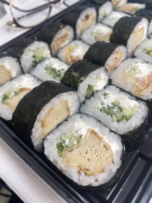 Состав: японский омлет, рис, нори, соус Унаги, кунжут белый