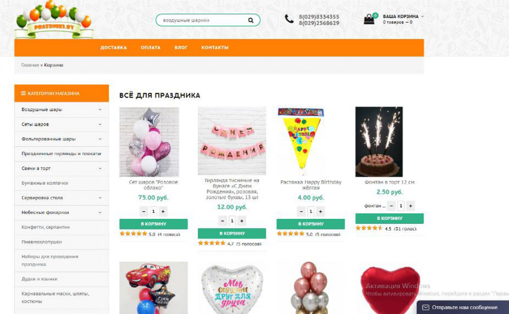 Продажа интернет-магазина с товарами для праздника "PRAZDNIKI.BY" со скидкой 5%