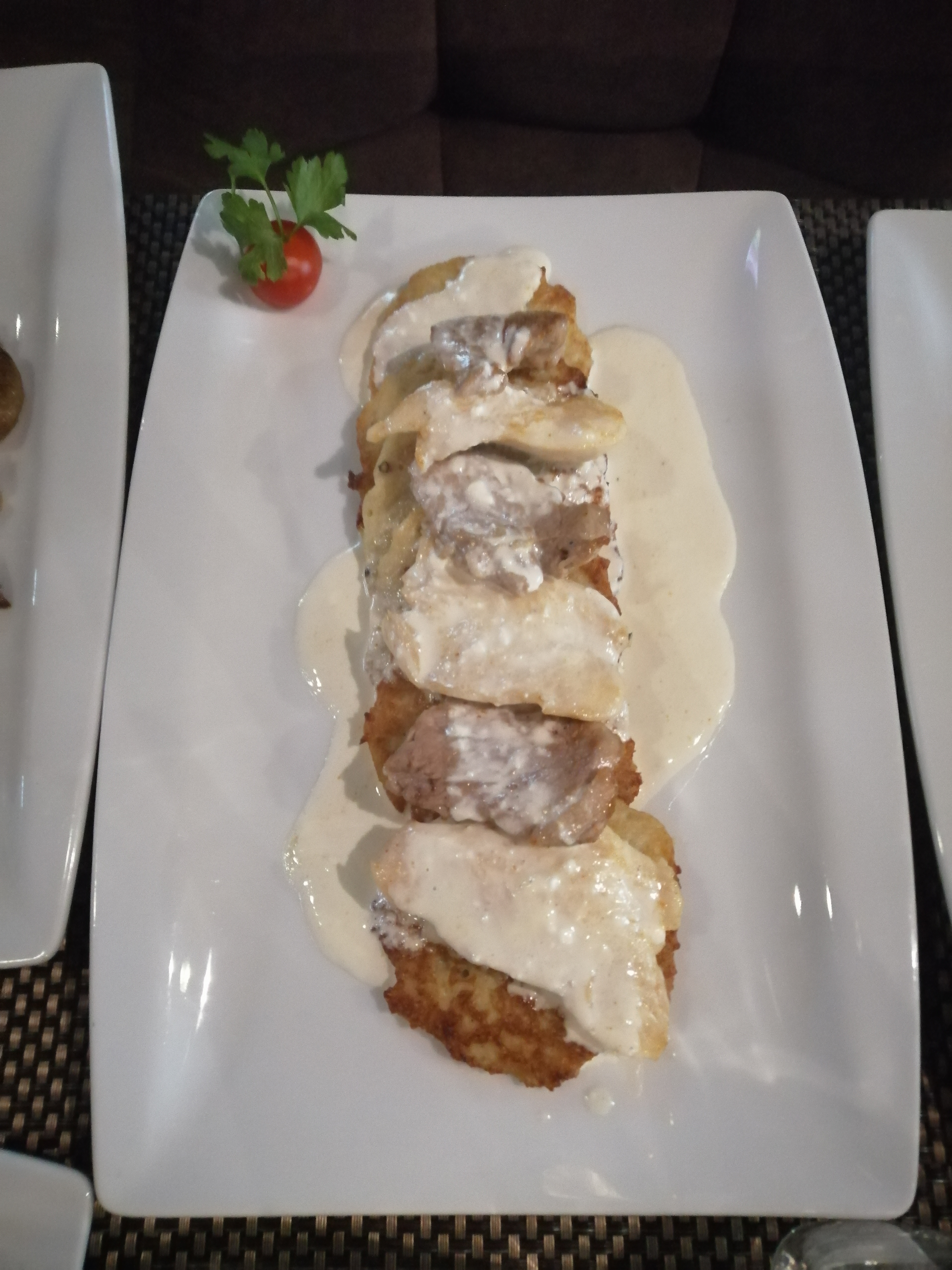 Узнали о ресторане на сливках и вчера впервые посетили. Заказали сет Классический. Место уютное, приятное. Некоторое время играл саксофон и это было чудесно!!! Немного напрягло то , что пришлось достаточно долго ждать горичие блюда, Но оно того стоило! Оба блюда были вкусные, горячие, сочные...И десерт обалденный!!! Так что ожидания оправдались! Кстати очень приятные, внимательные и улыбчивые администратор и официанты! Однозначно рекомендуем к посещению!!! И сами планируем ещё вернуться