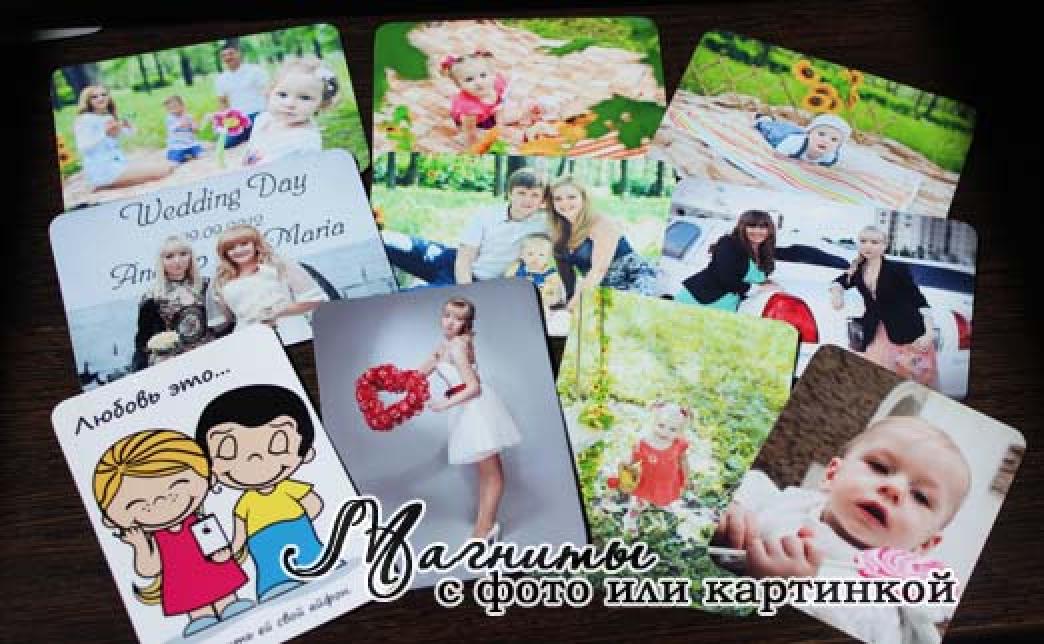 - На магниты наносится любое изображение заказчика (фото, картинка, надпись).