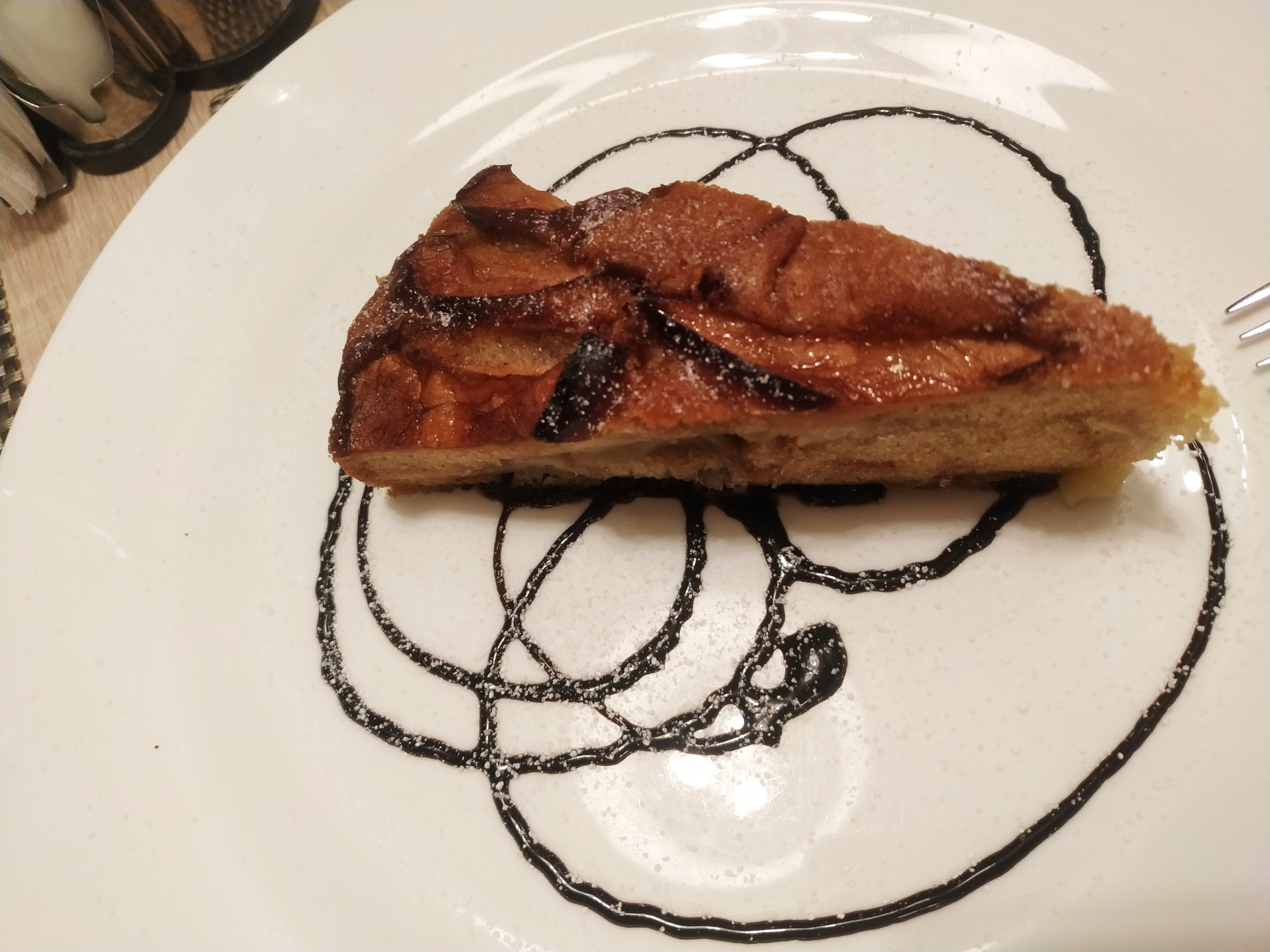 Состав: пирог яблочный, топпинг, сахарная пудра |