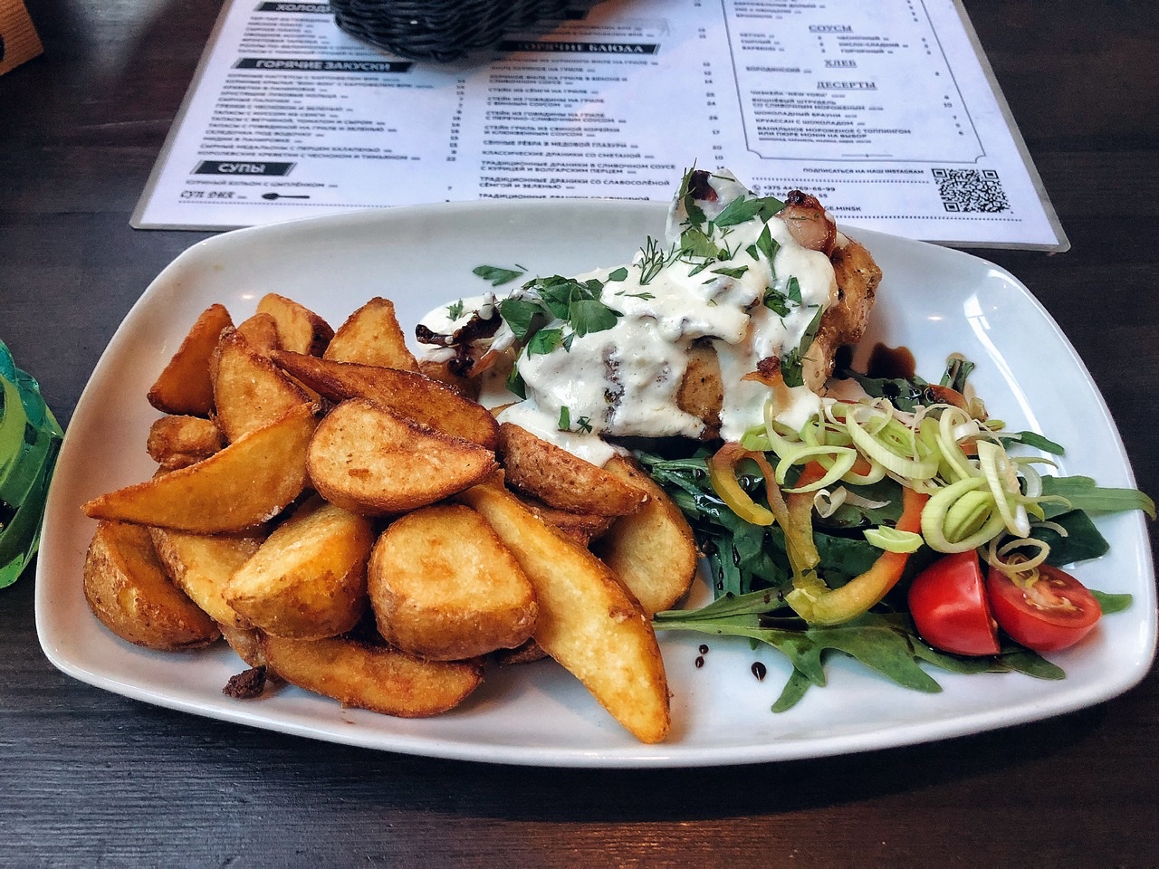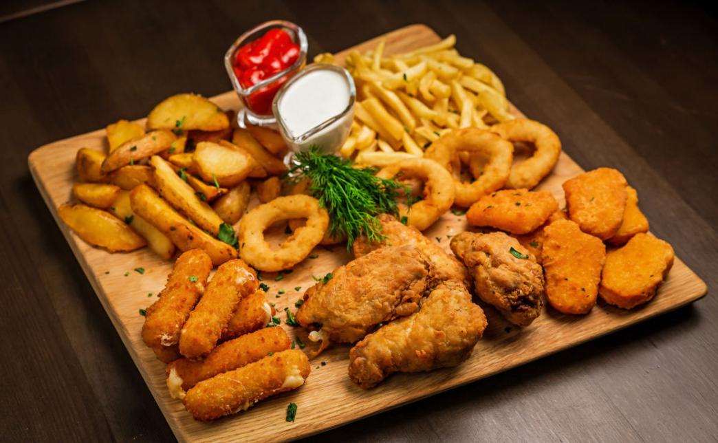 - 2 соуса: кетчуп 50 г + соус 50 г на выбор (кетчуп, горчичный, сырный, барбекю, чесночный, кисло-сладкий).