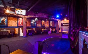 В нижнем зале караоке-клуба установлена профессиональная система AST, причем каталог песен регулярно обновляется. Петь можно как в рок-н-ролльный ретро-микрофон, так и в радио-микрофон Shure SM58. Верхний зал, как и нижний, вмещает до 50 человек: в нем можно отдохнуть после тяжелого рабочего дня, попробовать блюда белорусской и европейской кухонь.