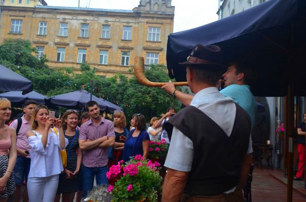 16:00 - дополнительная экскурсия. Гастрономическая экскурсия по самым интересным и знаменитым заведениям Львова, которая включает в себя дегустации. Начинаем нашу экскурсию с чешского производства пенного напитка. Производитель пенного напитка откроет Вам все секреты производства пенного напитка, мы посетим производство, и попробуем только живой пенный напиток: Лагер, Десятка, Пшеничное и Черное. Следующий пункт - это встреча с паном Малодобрым, именном тем, кто осуществлял все наказания в Средневековом городе! Тут будем пытать свой желудок запахами из лучшего мясного ресторана Украины и байками в исполнении самого Палача. Если он заметит среди Вас должника - клетка с пытками Вам обеспечена! Есть места для туристов, а есть для местных. Местные во Львове пьют настойки - их 65 видов, и мы начнем с 3-х лучших видов! Если думаете, что на этом наши встречи-приключения окончены, то нет! Мы отойдем на "5 Деко" с главным часовщиком и трубачом, попробуем пользоваться 3-х метровым гуцульским телефоном и услышим невероятные звуки в исполнении местных музыкантов. Дальше мы попадаем в еврейский квартал: в ресторанах надо торговаться, трубочист не чистит трубы, а только наливает, дракон дышит огнем, за поворотом стоит Мазох, и экскурсовод уже рассказывает про невероятного вкуса шоколад - одно мгновение, и Вы в сердце Львова на Площади Рынок! Вы готовы к приключениям, а у гида остались рекомендации для Вашего вечера - хотите в тюрьму, вкусно кушать, танцевать и медовуху - Вам в Крыивку, душа желает изысканности и шика - да Вы – масонское ложе! А как туда попасть и какие пароли надо знать - эта информация только для наших туристов, гиды с удовольствием поделятся с Вами! Внимание! Это не алко-тур, это лучшая экскурсия, которую проводят во Львове! Задача местных гидов - создать настроение на вечер, показать разнообразие вечерней львовской жизни, рассказать только самое интересное, что можно узнать о Львове! И помните, кто не попробовал Львов на вкус, тот там не был! (Длительность 3 часа. Доплата. В стоимость входит: местный крафтовый пенный напиток, настойки и закуски).