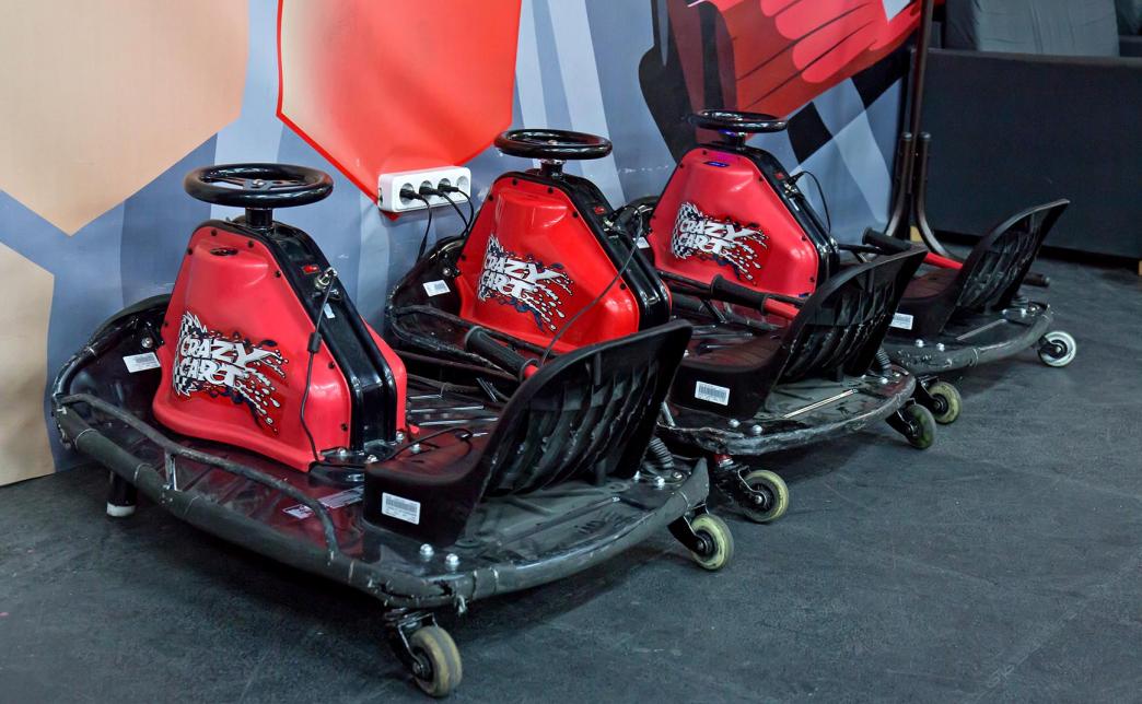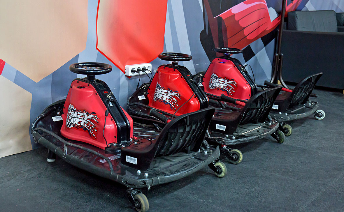 Эти сумасшедшие безумные машинки снабжены электро-мотором и рычагом для дрифта, который позволяет крутиться на месте, ехать боком, передом, спиной, выполнять полицейский разворот, много других трюков.
