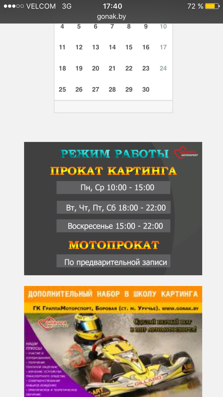 - Гоночный клуб «Граппа моторс» приглашает Вас на картинг, где Вы можете получить удовольствие от управления гоночным болидом и почувствовать себя настоящим автогонщиком на захватывающей трассе.
