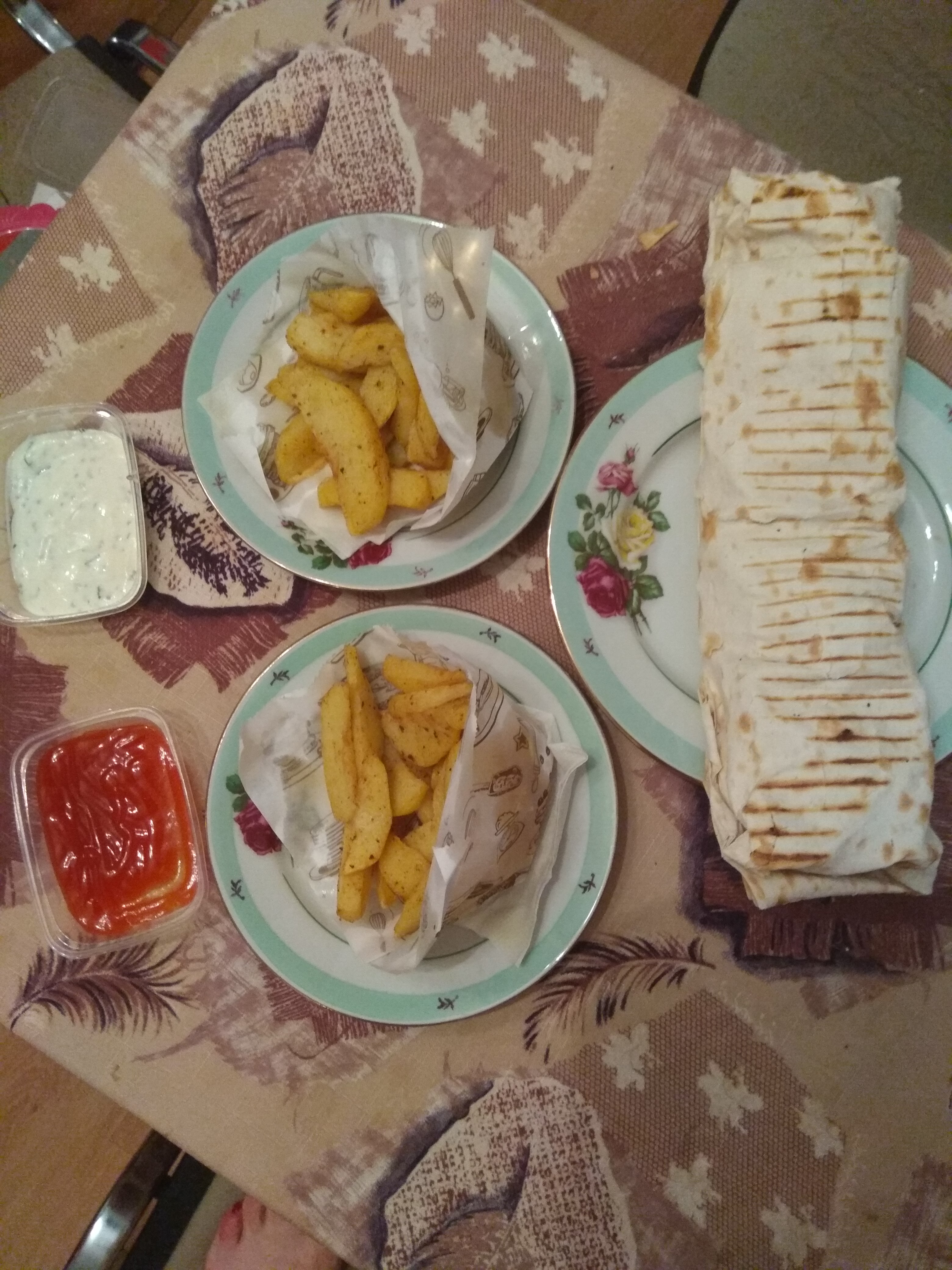Брали шаурму и картофель по деревенски! Соус чесночный на высоте!