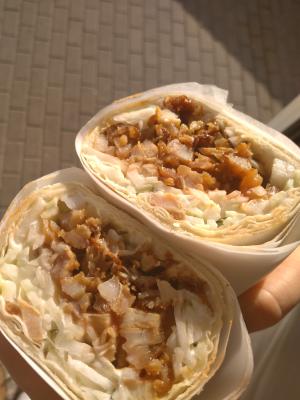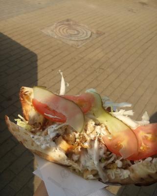 за 4,50 дали половину здоровенной лепешки, набили ее мясом, овощами и офигенским соусом