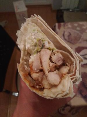Шаурма действительно большая, но мяса малова-то. Вкусный соус, всё вкусно, но капусты больше мяса.
