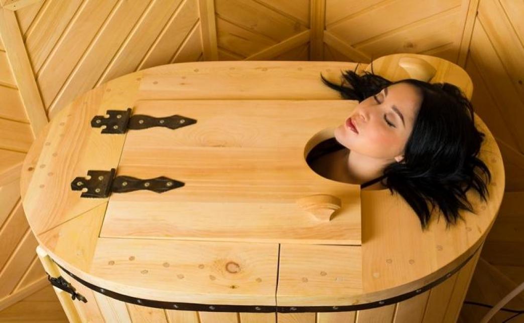 - две кедровые бочки. Кедровая бочка - это специальная кабина из кедровой древесины, заполненная паром, настоянным на травах при температуре 50 градусов Цельсия. Пар, насыщенный веществами, содержащимися в древесине кедра, оказывает фармацевтическое воздействие как на кожный покров, так и на многие внутренние органы и системы. Эффективность применения: