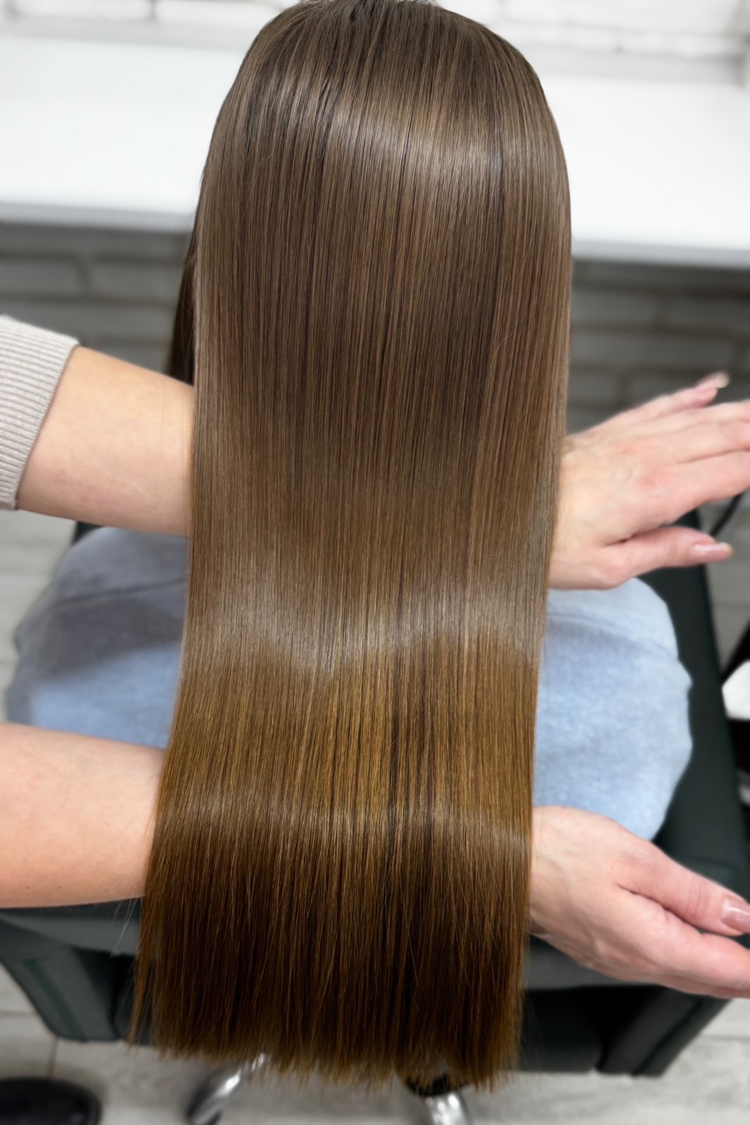 - кератиновое выпрямление/ботокс для тонких, славянских, обесцвеченных волос: