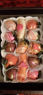 Клубника в бельгийским шоколаде и с дизайнерским оформлением Кустовые розы, коробка в форме сердца с окошком