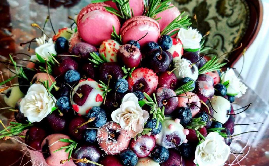 - Всегда свежие букеты из ягод, фруктов, цветов и даже колбасы здесь