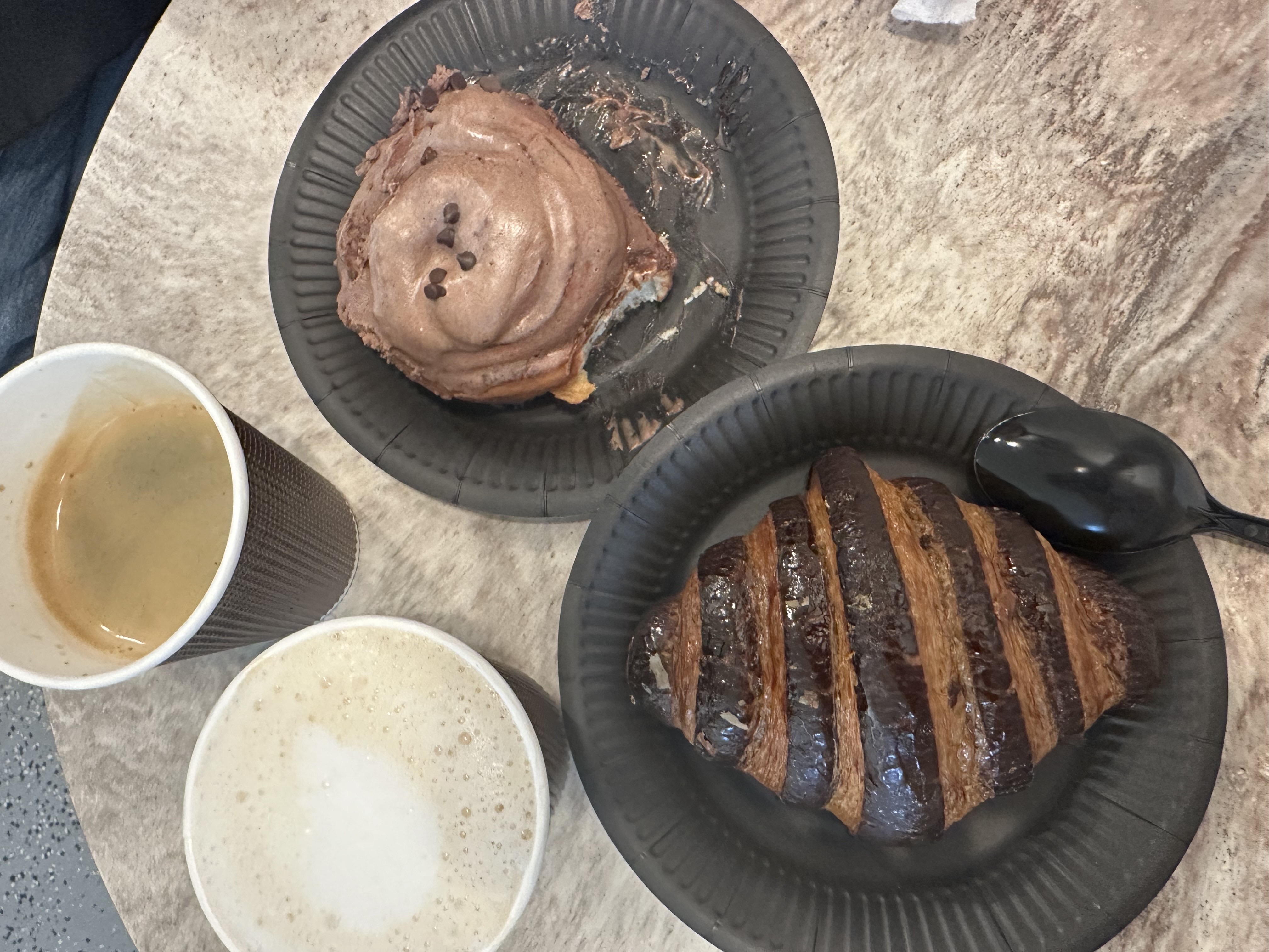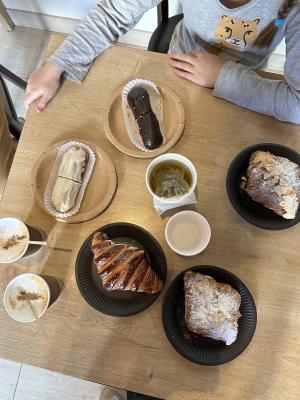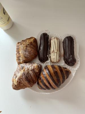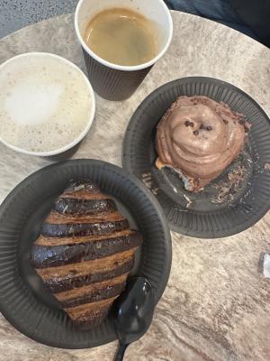 Очень вкусная выпечка, особенно круассан миндальный, кофе в целом неплохой, вот эклеры не понравились совсем никакие и чиабатта была не очень свежей. В целом все хорошо!