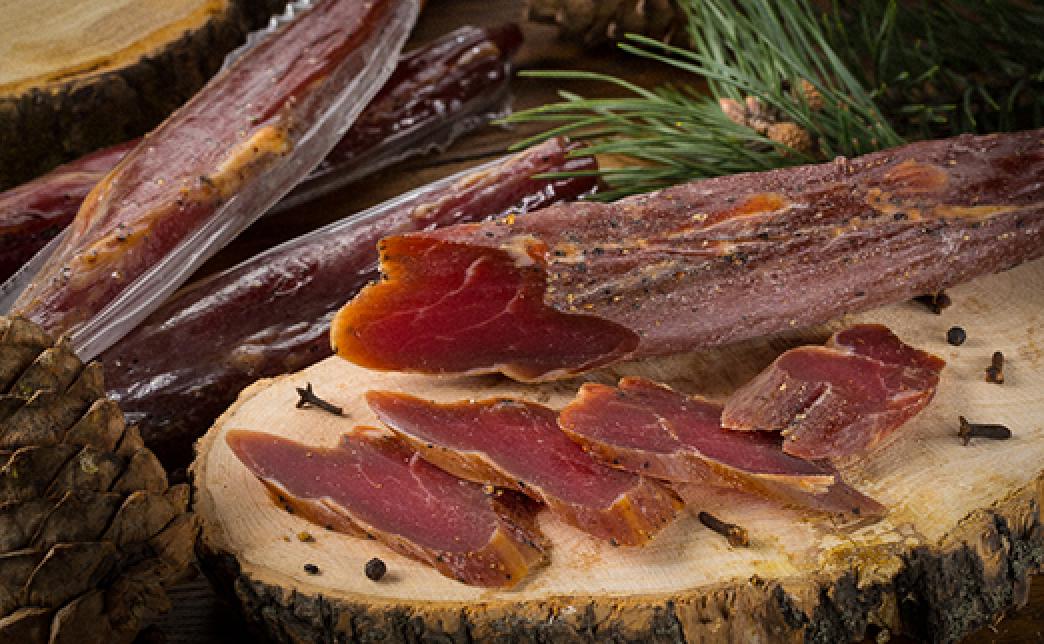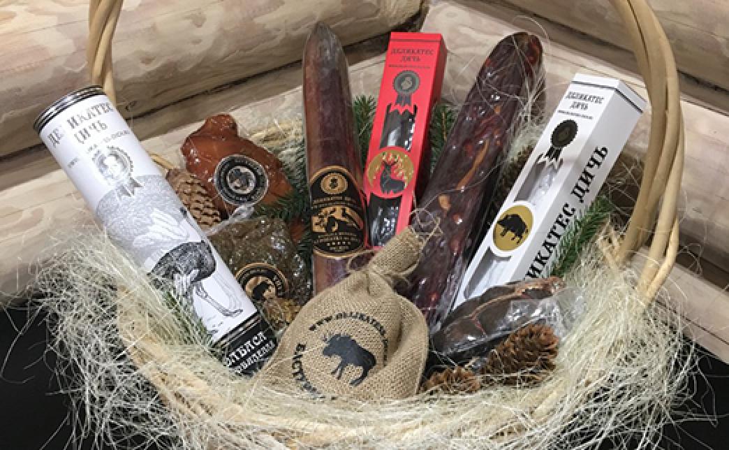 Состав: чоризо из Медведя, тушеное мясо оленя, бастурма из лося в подарочной упаковке и косуля с перчиком или олень сыро-вяленый. |