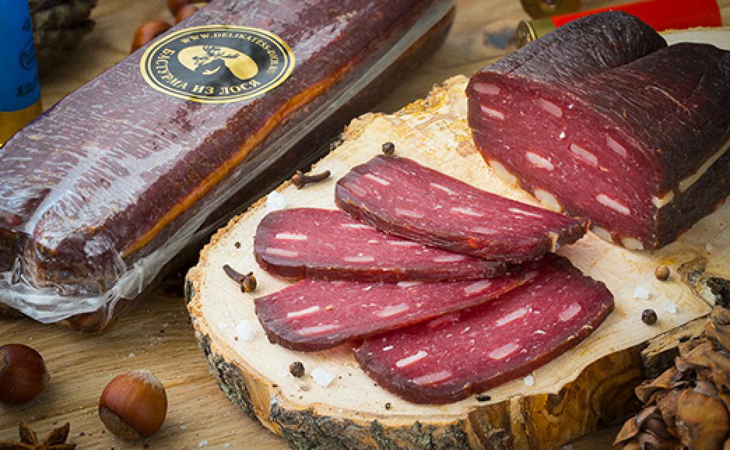 Состав: мясо лося, свиной жир, перец черный, соль, нитрит натрия. |