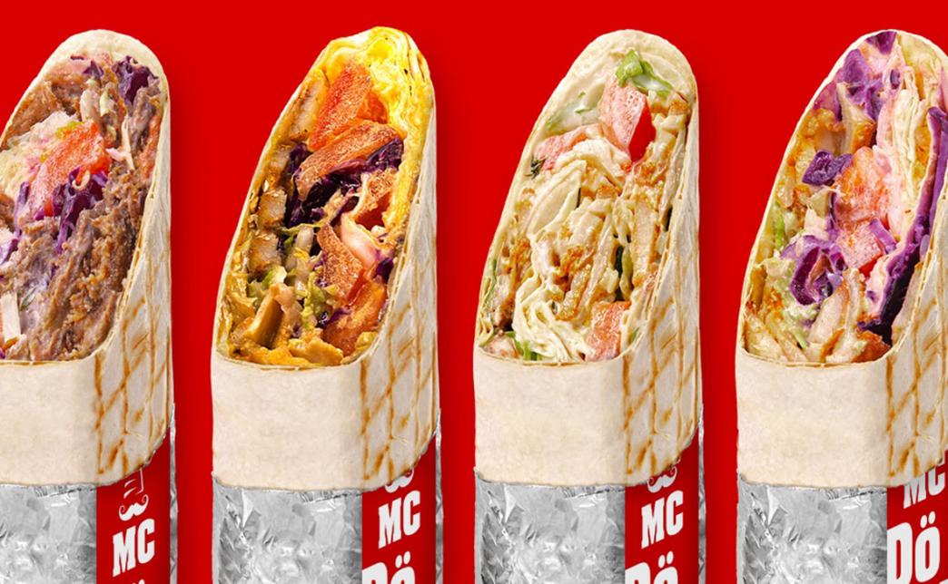 - донер в хлебе (2 шт, по 435 г): хлеб из печи, курица с вертела, томат, лук, капуста, соус на выбор