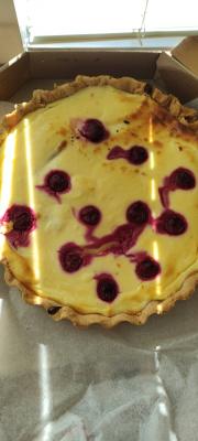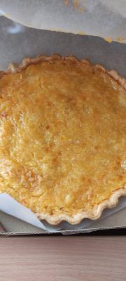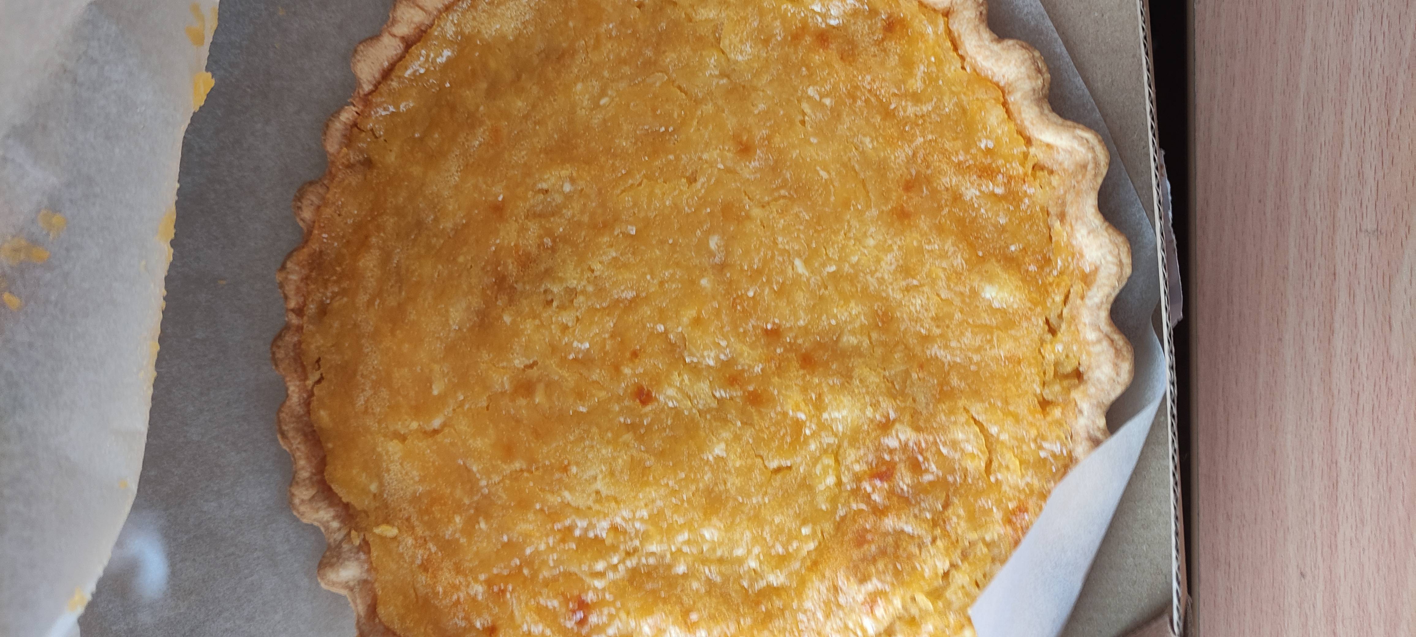 Киш с лимонным курдом (850 г) Состав: основа из песочного теста, яйцо, сахар, лимон, апельсин, сок лимонный