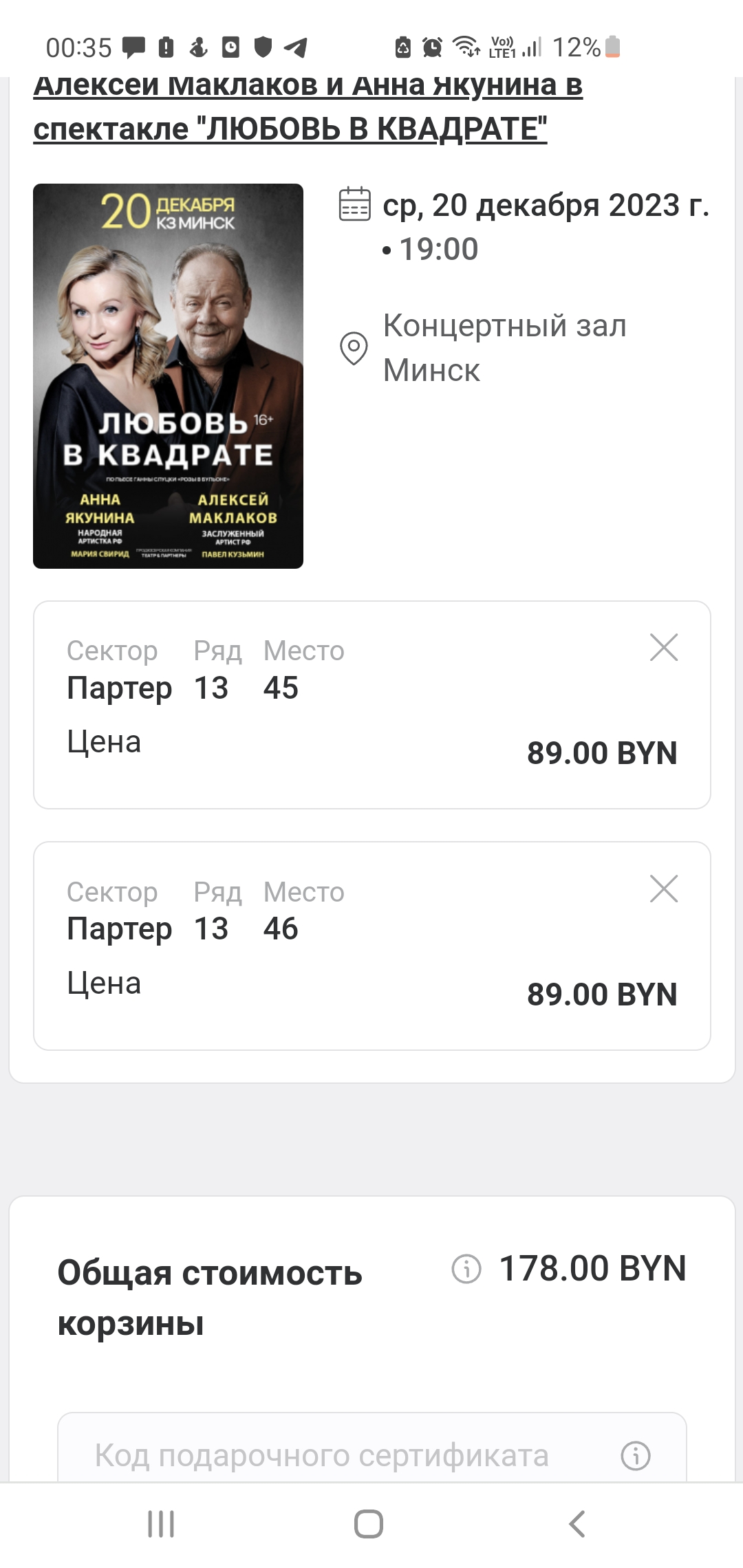 - Промокод дает право на скидку до 50% на билет на лирическую комедию "Любовь в квадрате" в КЗ "Минск"