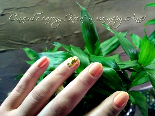 Хочу поблагодарить мастера Анну за аккуратный маникюр. Также спасибо за бонус - spa-уход в подарок ( нанесли скраб, сделали масочку для рук). И это все за 7 руб.!!!!!!