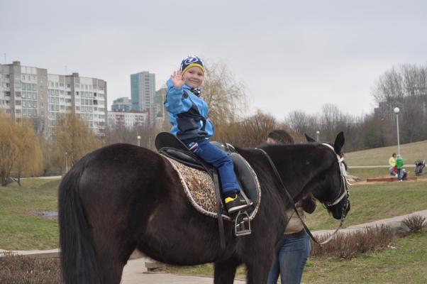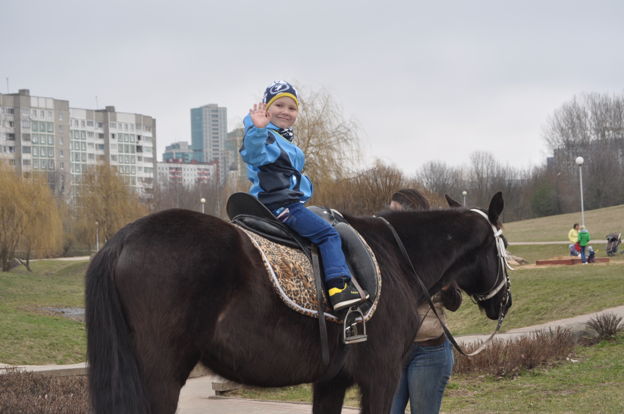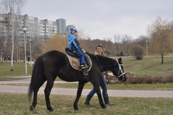 Возрастных ограничений для прогулки нет. Есть лошадка, на которой катаем малышей с 1,5-2 лет...