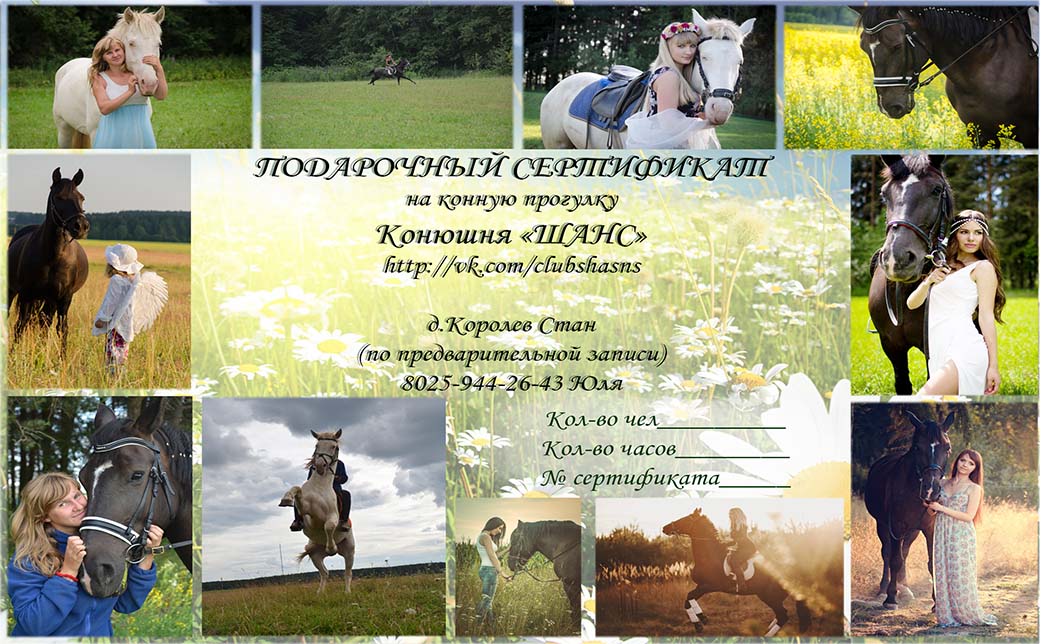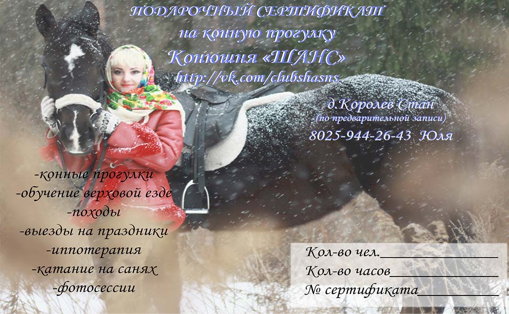 - Промокод дает право на скидку 50% на приобретение подарочного сертификата на конную прогулку